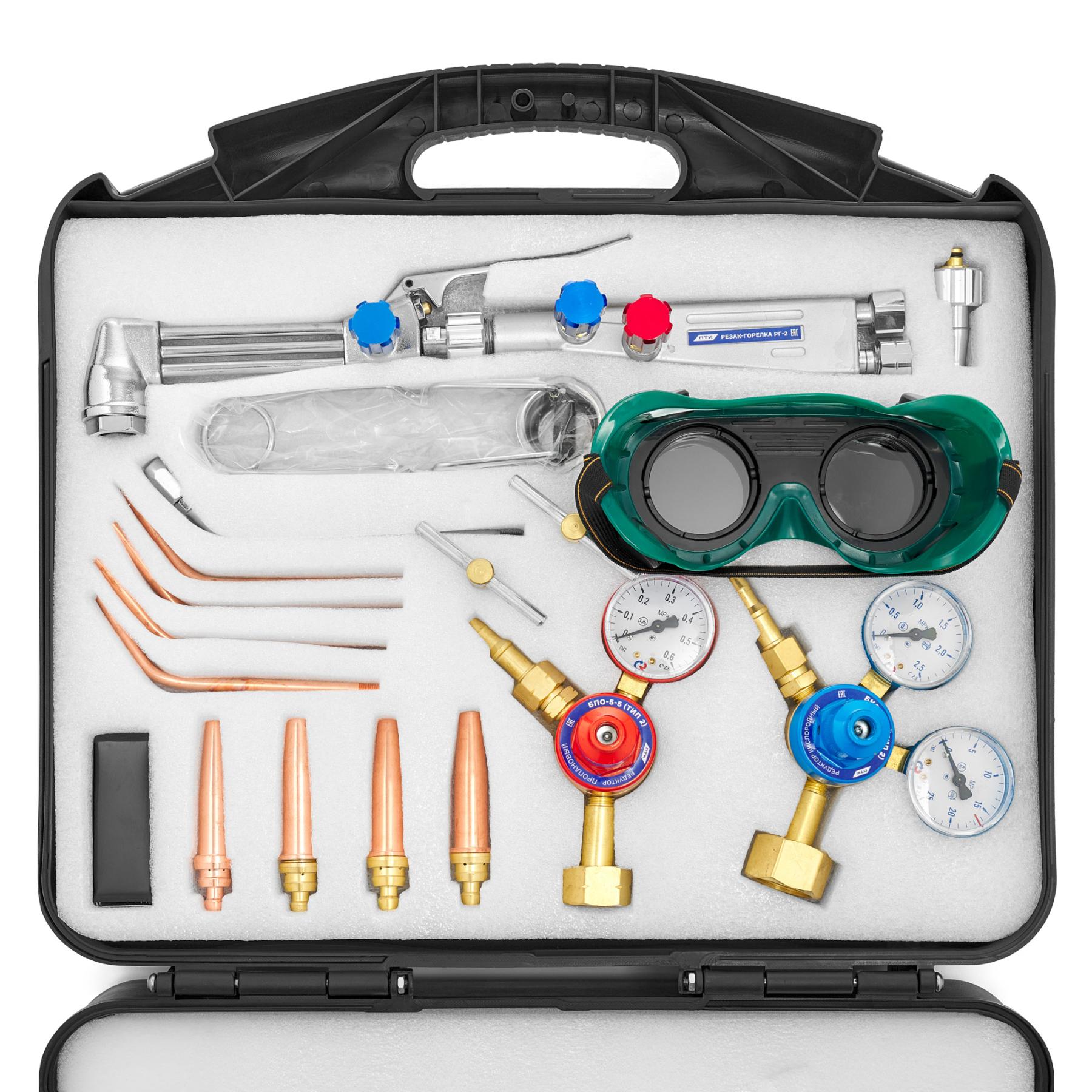 Комплект газосварщика КГС 2-02 - это расширенный профессиональный набор оборудования для ручной газовой сварки, резки, пайки и нагрева металлов с использованием ацетилена и пропана в качестве горючего газа.