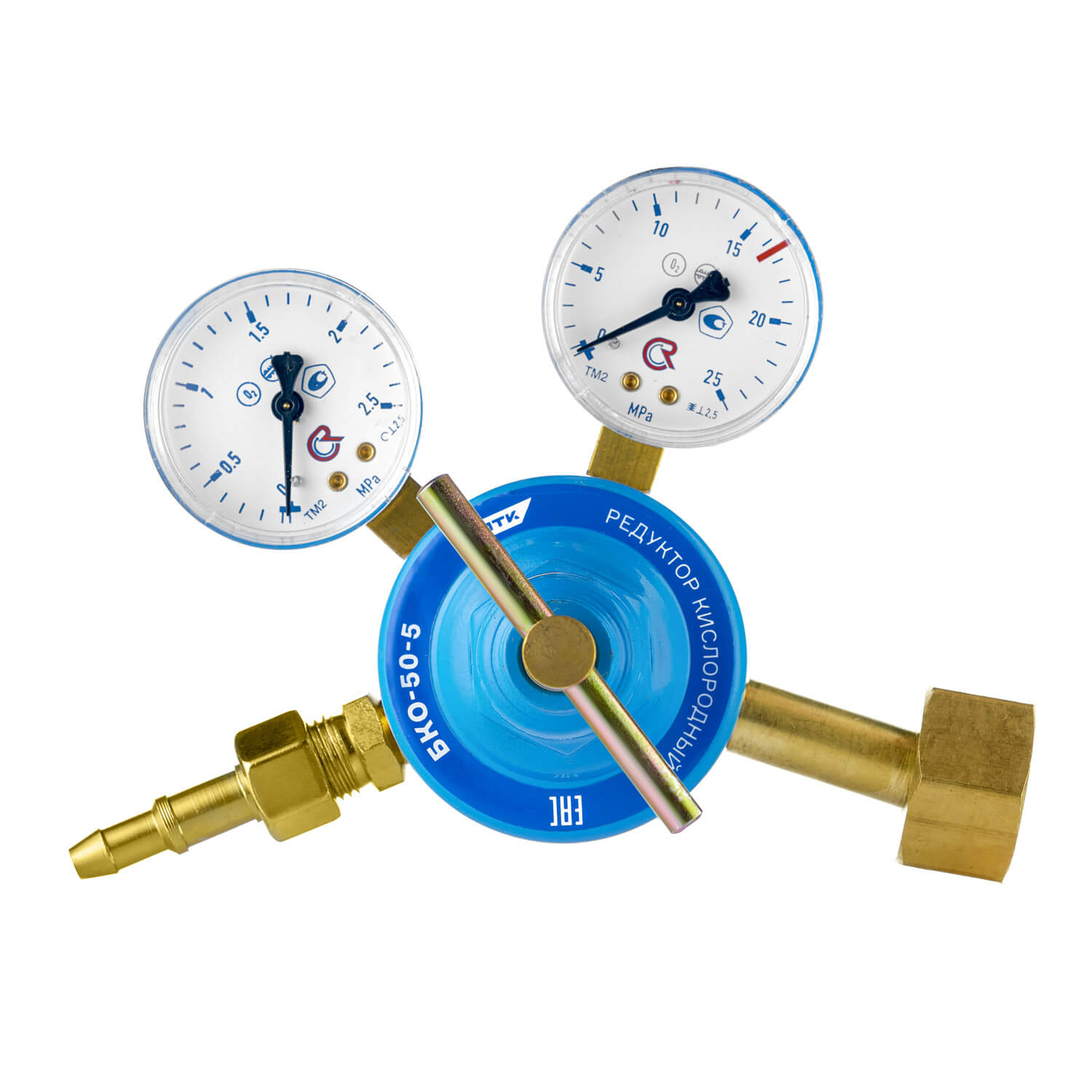 Редуктор кислородный БКО-50-5 предназначен для понижения давления газа, поступающего из баллона, и автоматического поддержания постоянным заданного рабочего давления при газопламенной обработке. Производит тонкую настройку рабочего давления. Срабатывание предохранительного клапана происходит при давлении в 1,6 МПа.