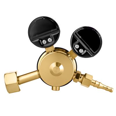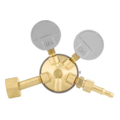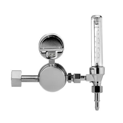 Универсальный регулятор расхода газа с манометром высокого давления и манометром-расходомером для настройки расхода углекислоты или аргона. Латунный корпус. Поставляется в комплекте с универсальным ниппелем.