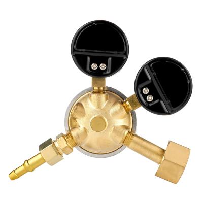 Углекислотный редуктор в алюминиевом корпусе. Поставляется в комплекте с универсальным ниппелем для рукавов диаметром 6 и 9 мм.