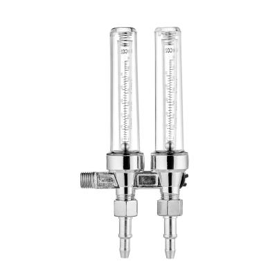 Двойной латунный ротаметр для измерения расхода газообразного аргона и углекислого газа. Поставляется в комплекте с накидными гайками М16х1,5 и универсальными ниппелями. К регулятору расхода газа присоединяется входным штуцером через резьбу М14х1,5.