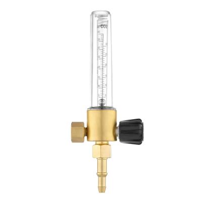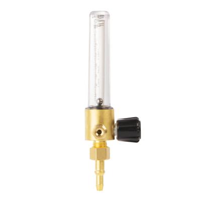 Латунный ротаметр для измерения расхода газообразного аргона и углекислого газа. Крепится к корпусу регулятора при помощи штуцера М14х1,5. Поставляется в комплекте с гайкой М16х1,5 и универсальным ниппелем.