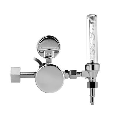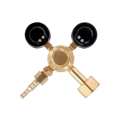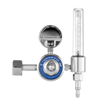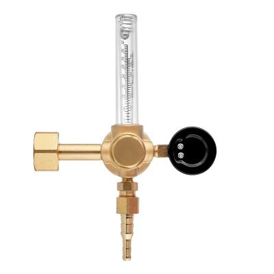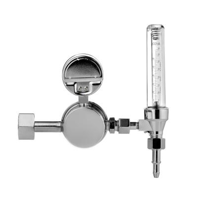 Баллонный редуктор для измерения углекислого газа. Корпус редуктора изготовлен из латуни, диаметром 52 мм. Установлены манометры с резьбой присоединения 1/8 NPT.