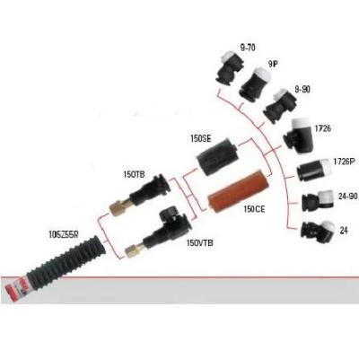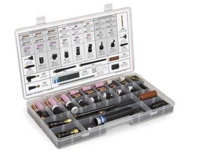 Набор из двух роликов с U-образной канавкой и насечкой для сплошной и порошковой проволоки с особо мягким покрытием, двумя направляющими (вводной и промежуточной) и противоизносной вставкой для установки в механизм подачи.