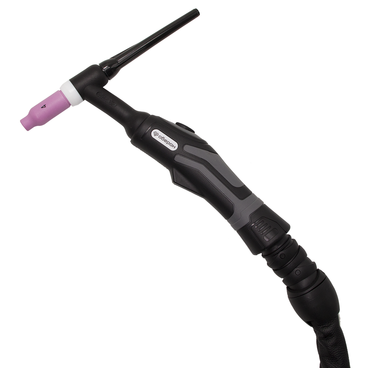 Горелка TW 26FX Comfort с гибкой шейкой предназначена для аргонодуговой сварки неплавящимся вольфрамовым электродом (TIG/WIG). Горелки имеют многосоставное шарнирное соединение, которое обладает повышенной подвижностью и увеличенным углом наклона и обеспечивает непревзойденный комфорт работы сварщика. Эргономичная рукоятка с прорезиненными вставками обеспечивает комфортную работу сварщика даже при длительных работах. А дополнительный упор в нижней части рукоятки позволяет снизить напряжение руки, повысить контроль и продолжительность работы. Съемная кнопка позволяет модифицировать управление горелки под любые задачи. Для повышения удобства работы часть оплетки силового кабеля выполнена из натуральной кожи. За счет этого силовой кабель становится более гибким и легким, повышается его износостойкость.