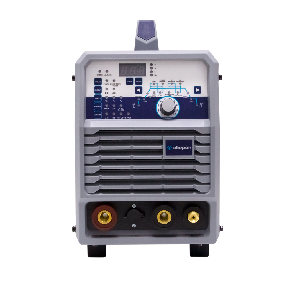 Сварочный аппарат Оберон TIG 200P AC/DC предназначен для сварки в режимах ручной дуговой сварки (MMA), сварки неплавящимся вольфрамовым электродом в режиме постоянного тока (DC TIG) или переменного тока (AC TIG) черных металлов, меди, титана, нержавеющей стали, алюминия и его сплавов.