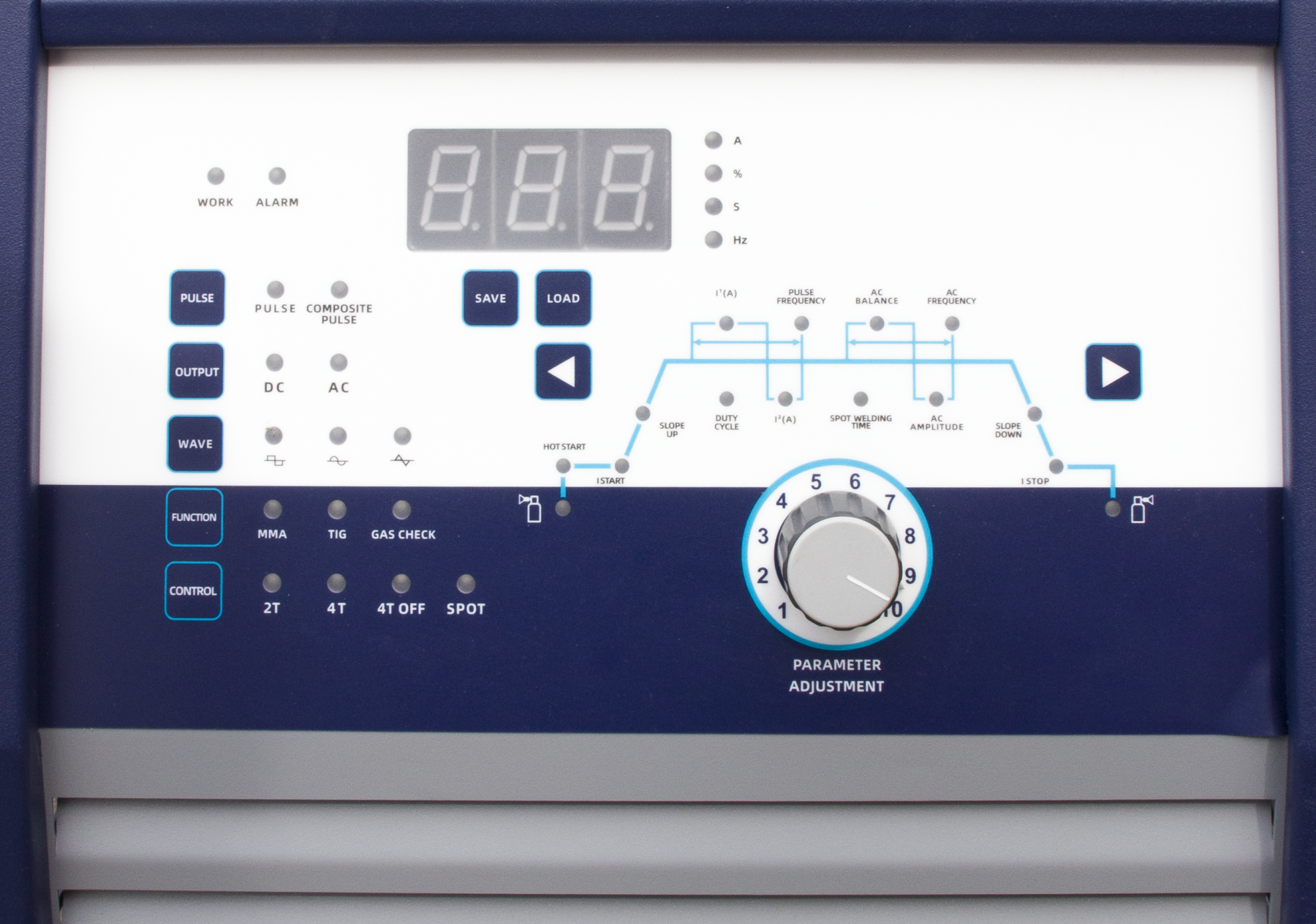 Возможность выбора формы волны позволяет изменить характер процесса сварки, глубину проплавления, это расширяет возможности подстройки аппарата под конкретную задачу.