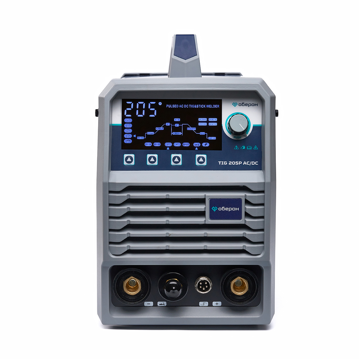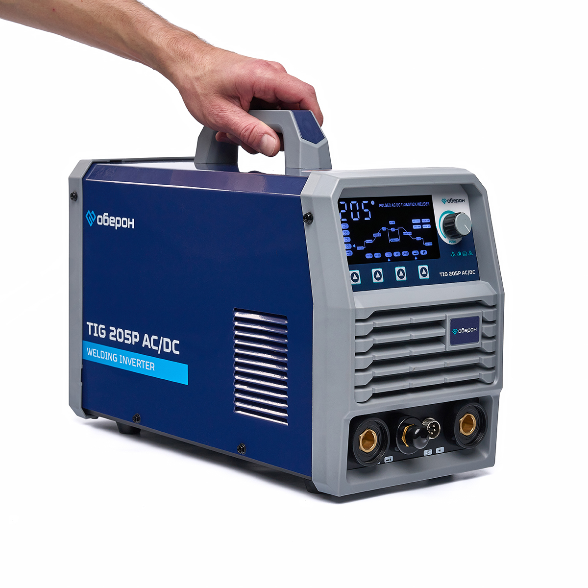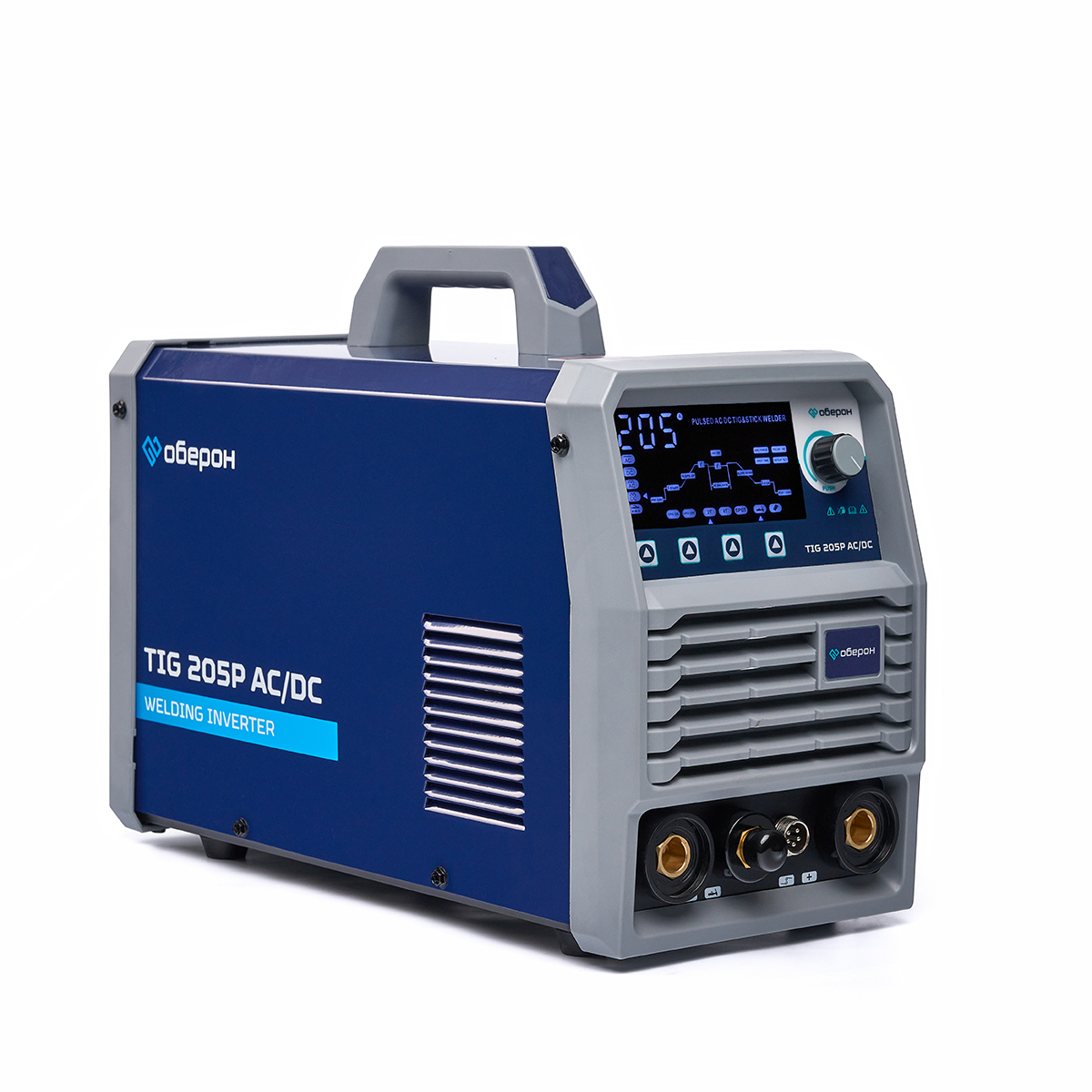 Сварочный аппарат Оберон TIG 205P AC/DC предназначен для сварки в режимах ручной дуговой сварки (MMA), сварки неплавящимся вольфрамовым электродом в режиме постоянного тока (DC TIG) или переменного тока (AC TIG) черных металлов, меди, титана, нержавеющей стали, алюминия и его сплавов.Основные особенности и функции аппарата:Многофункциональная панель управления с возможностью регулировок всех параметров сварочного процесса: времени продувки газом до и после сварки, стартового, пикового и финишного тока и др.Возможность подключения педали дистанционного управления и дистанционное управление сварочной горелкой. (Педаль не входит в стандартный комплект поставки).Аппарат оснащен импульсными режимами сварки для работы с тонколистовым металлом. Функция предотвращает прожигание металла и его деформацию.2Т/4Т режимы работы сварочной горелки для сварки коротких или длинных швов.Дополнительная функция сварки MMA и точечной сварки SPOT.Функция горячего старта в режиме MMA: более простой и надежный запуск дуги.Функция VRD: для обеспечения безопасности сварщика в режиме ожидания.Регулируемый Arc Force: улучшает стабильность горения электрода, существенно сокращает вероятность непреднамеренного обрыва дуги.ВЧ-зажигание дуги: встроенная герметичная цепь зажигания дуги; также применимо к зажиганию дуги TIG без ВЧ.Интеллектуальное управление температурой вентилятора: продлевает срок службы вентилятора.Автоматическое сохранение параметров сварки при выключенном питании; автоматическое восстановление параметров сварки последнего раза.Конструкция с тремя уровнями защиты; прекрасные антистатические и антикоррозионные характеристики. Панели из высокопрочного конструкционного пластика гарантируют высокую эффективность работы в случае сильного удара и падения или других жестких условий.Стандартная комплектация:Сварочный аппарат — 1 шт.Инструкция по эксплуатации — 1 шт.Сварочная горелка WP-26 4м — 1 шт.Клемма заземления с кабелем 3м — 1 шт.Газовый шланг — 1 шт.