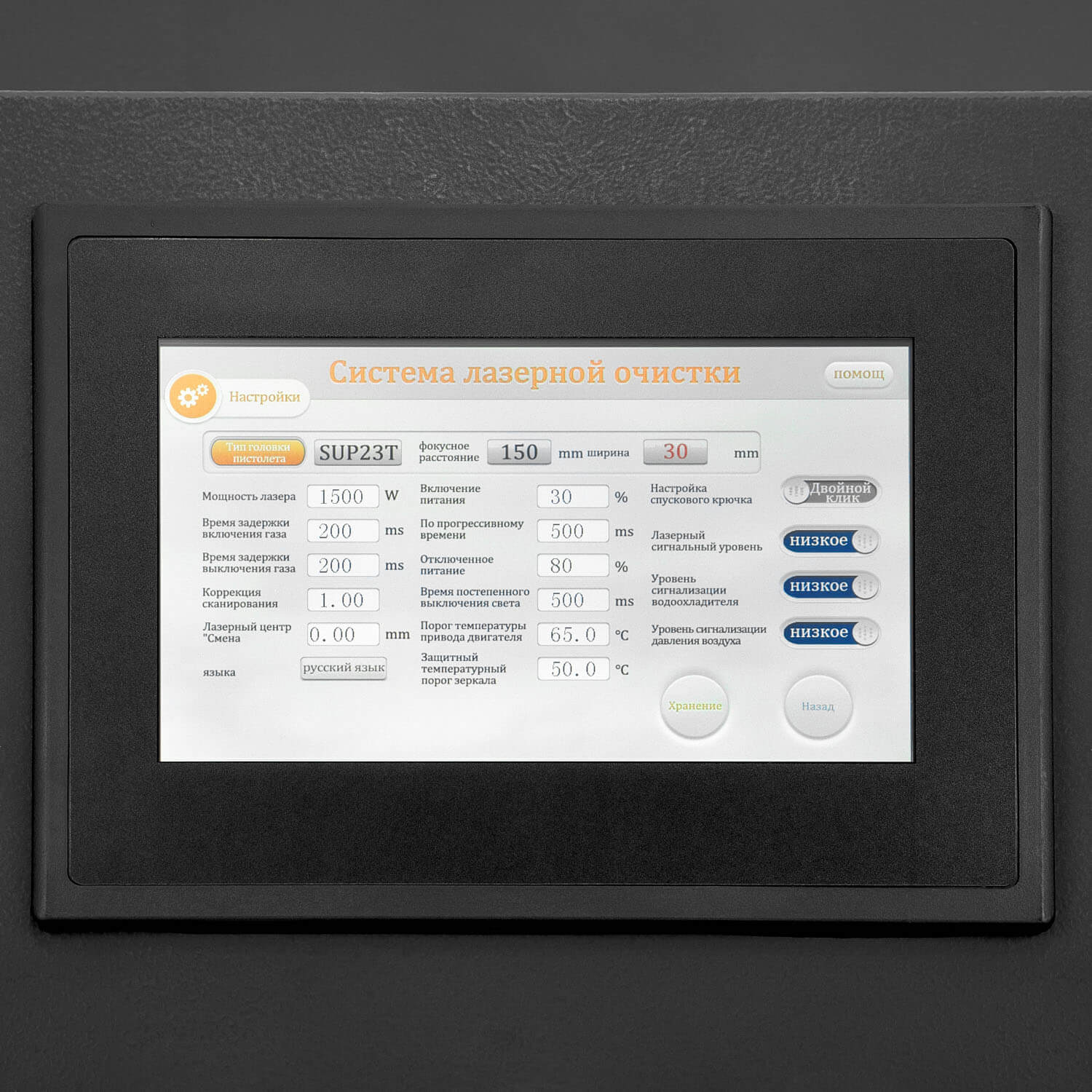 ОБРАТИТЕ ВНИМАНИЕ! Использование воды в качестве охлаждающей жидкости в системе охлаждения лазерного источника (чиллере) запрещено! Необходимо использовать только специальные жидкости для систем охлаждения на основе этиленгликоля для предупреждения промерзания системы охлаждения в лазерном генераторе.