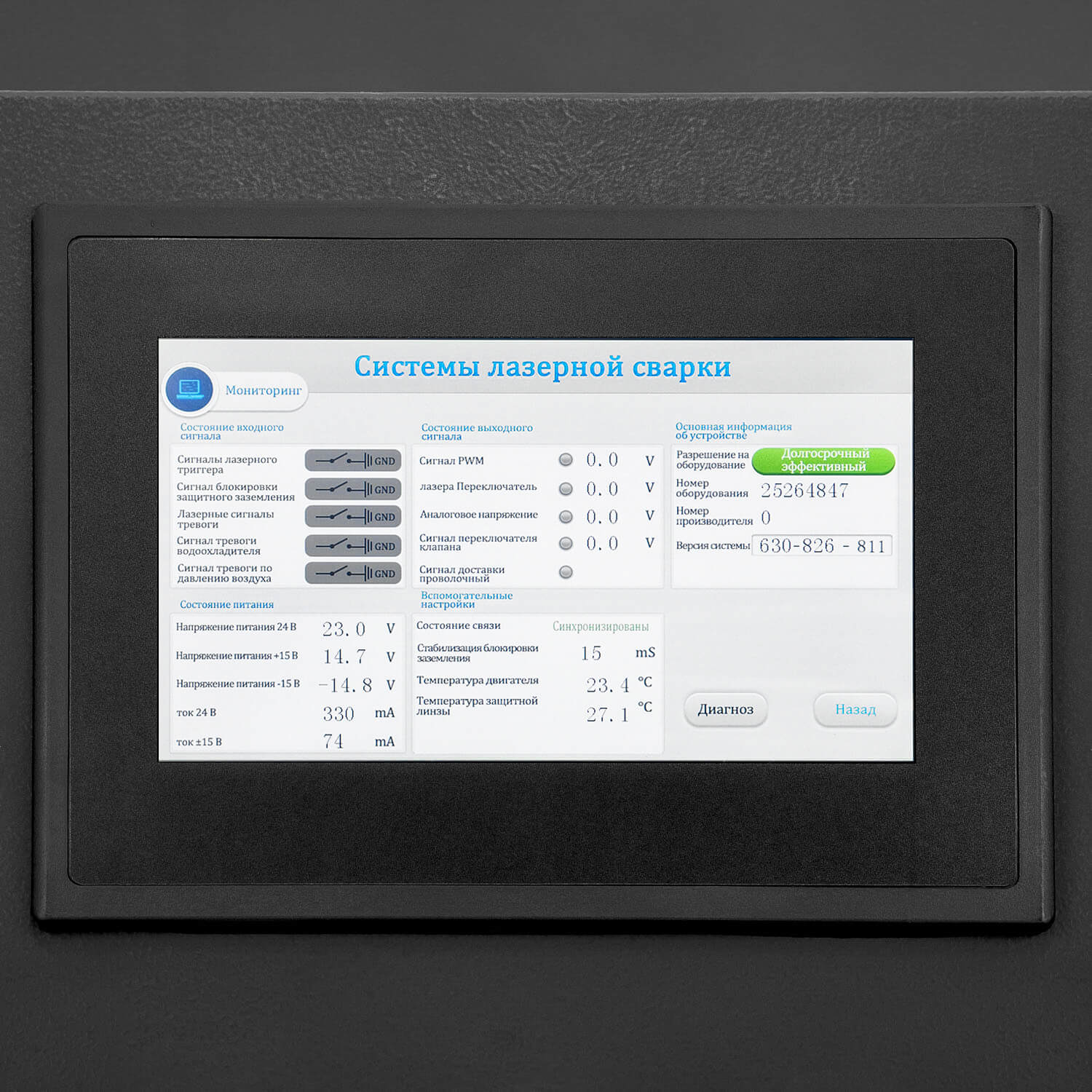 ОБРАТИТЕ ВНИМАНИЕ! Использование воды в качестве охлаждающей жидкости в системе охлаждения лазерного источника (чиллере) запрещено! Необходимо использовать только специальные жидкости для систем охлаждения на основе этиленгликоля для предупреждения промерзания системы охлаждения в лазерном генераторе.